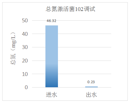 我司技術(shù)人員通過現(xiàn)場評估,發(fā)現(xiàn)生化系統(tǒng)總氮去除效率有限,生化溫度30℃,系統(tǒng)內(nèi)有效生物量不足,導(dǎo)致系統(tǒng)抗沖擊能力差,出水總氮難以達(dá)標(biāo)。通過技術(shù)人員現(xiàn)場投加復(fù)合碳源101和激活菌102,再配合現(xiàn)場生化系統(tǒng)運(yùn)行條件控制、優(yōu)化,達(dá)到如下效果:
